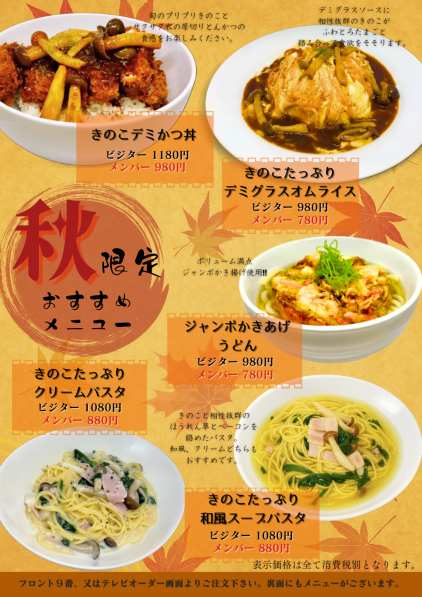 2025年10月01日 2025年秋限定メニュー始まりました!