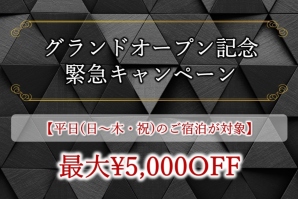 | 客室設備 | グランピングスペース(Room 503,502)、屋上露天風呂(Room 501)、持込用冷蔵庫、電子レンジ、電気ポット、浴室TV、水中照明、ジャグジー・マイクロバブルバス、Android TV搭載テレビ(75インチ)、VOD、Wi-Fi、スマホ充電器(貸出) |